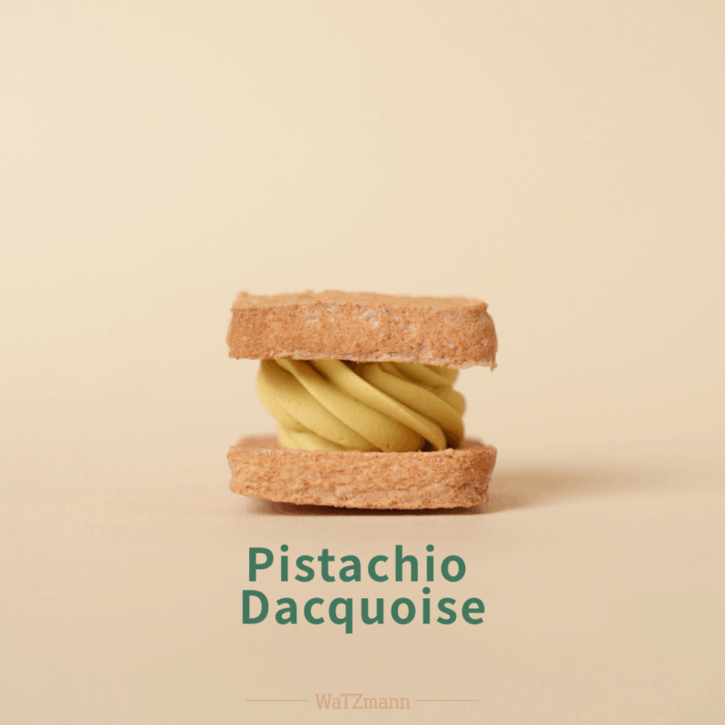 開心果達克瓦茲 (蛋奶素) •成分:發酵奶油、蛋白、杏仁粉、糖粉、砂糖、開心果醬、卡士達醬、低筋麵粉、蛋白粉、鹽 ※過敏原:奶、蛋、麩質、堅果 ※有效日期:詳見外包裝貼紙標示(年/月/日) 重量 1 公斤
